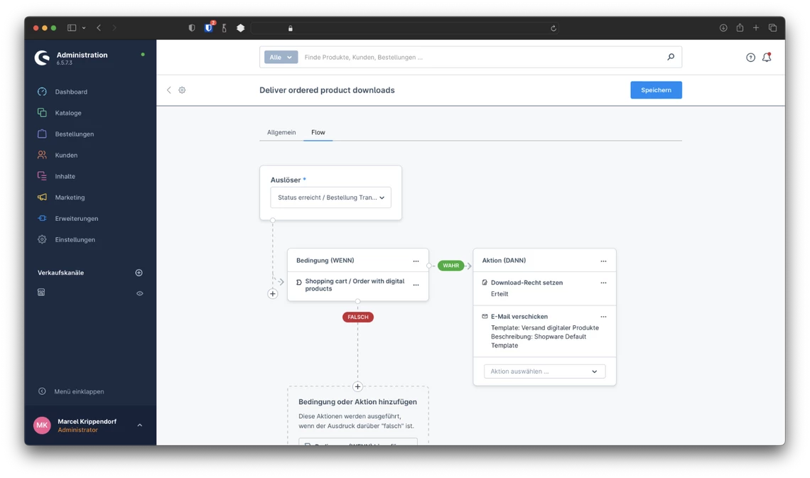 Die Grundidee des Flow Builders ist, dass bestimmte Ereignisse in Shopware oder Drittanwendungen als Auslöser für verschiedene Aktionen dienen können. So können Workflows definiert und Prozesse automatisiert werden, was eine neue Ebene an ereignisbasierten Aktionen ermöglicht. Daraus ergibt sich eine erhebliche Steigerung der Anpassbarkeit und Automatisierung von Geschäftsprozessen. Durch die Anwendung des Flow Builders können Nutzer Zeit sparen und Ressourcen freisetzen, die anderweitig genutzt werden können.